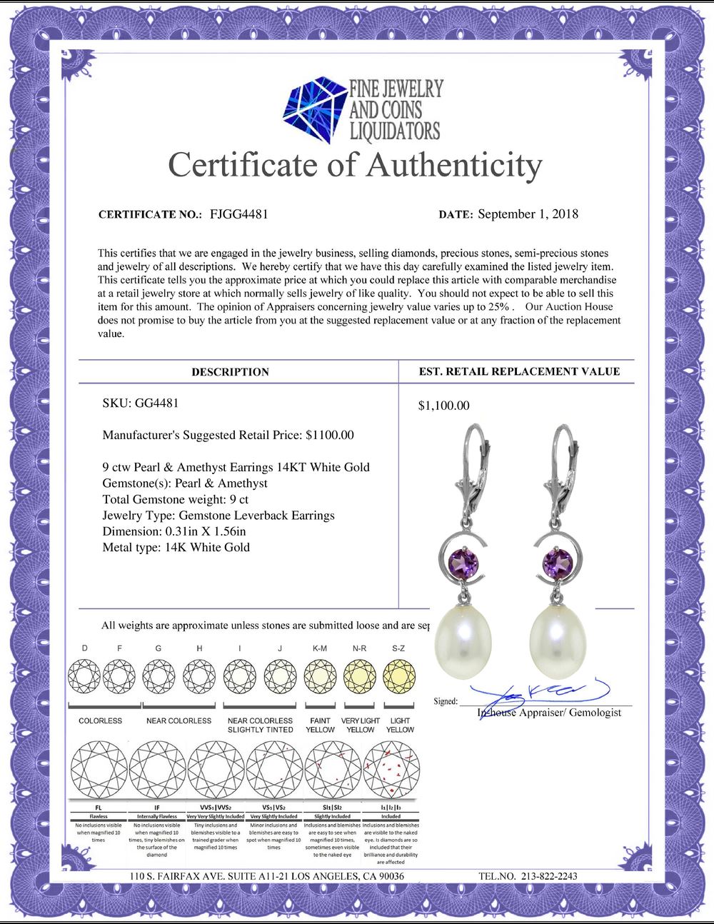 REF-36K3V - SKU: GG4481 ---- Genuine 9 ctw Pearl & Amethyst Earrings 14KT White Gold