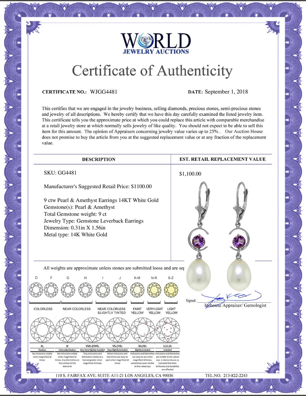 REF-36K3V - SKU: GG4481 ---- Genuine 9 ctw Pearl & Amethyst Earrings 14KT White Gold