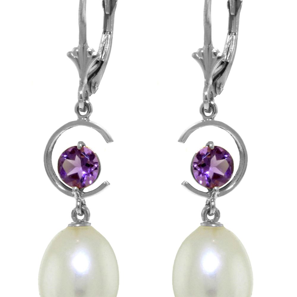 Genuine 14K White Gold 9 ctw Pearl & Amethyst Earrings