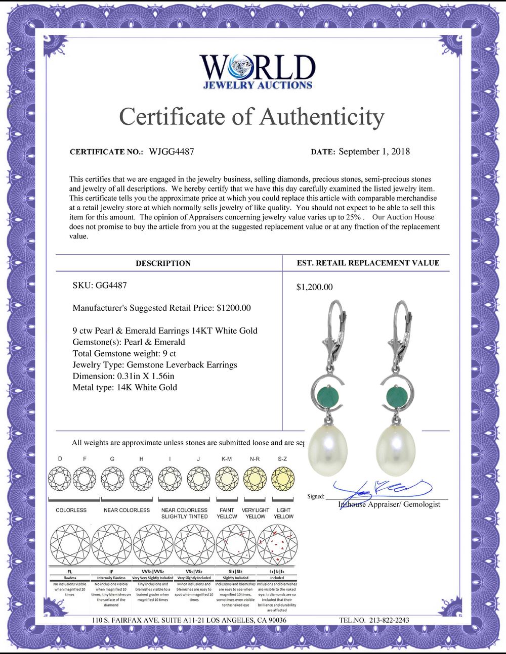 REF-39X4M - SKU: GG4487 ---- Genuine 9 ctw Pearl & Emerald Earrings 14KT White Gold