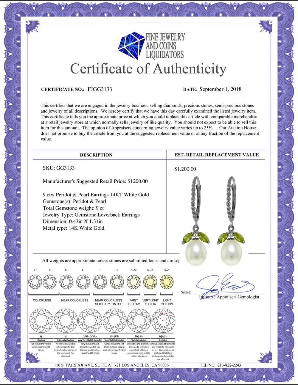 REF-39W3Y - SKU: GG3133 ---- Genuine 9 ctw Peridot & Pearl Earrings 14KT White Gold