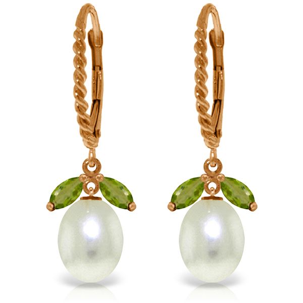 REF-39M3T ---- SKU:GG-3133 ---- Manufacturer's Suggested Retail Price: $1200.00 ---- Genuine 14K Rose Gold 9 ctw Peridot & Pearl Earrings