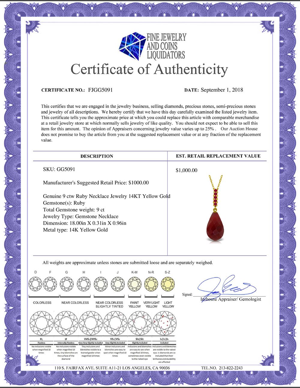 REF-30M6T - SKU: GG5091 ---- Genuine 9 ctw Ruby Necklace 14KT Yellow Gold
