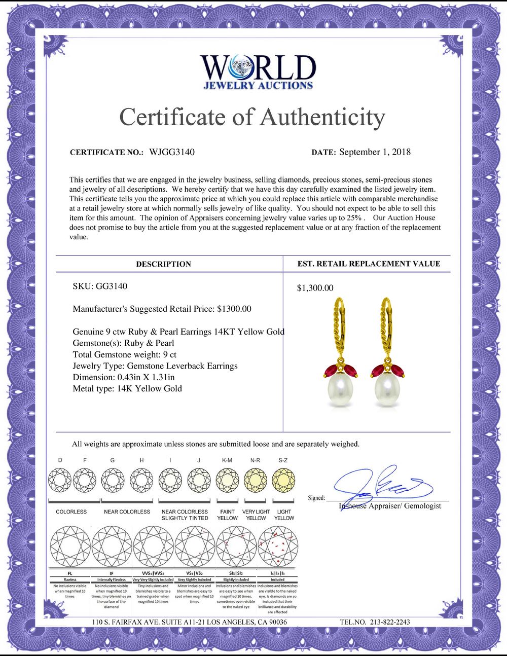 Genuine 14K Yellow Gold 9 ctw Ruby & Pearl Earrings