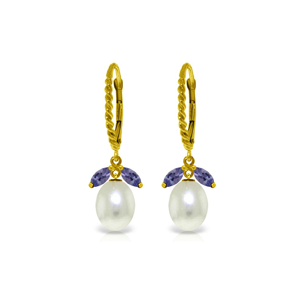 Genuine 14K Yellow Gold 9 ctw Tanzanite & Pearl Earrings