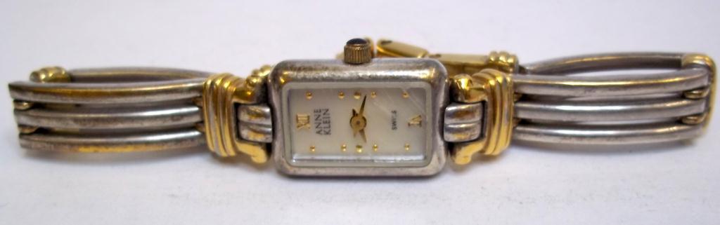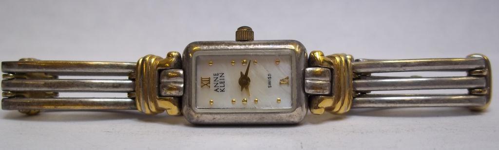 two tone Anne Klein Ladies Watch,Pearl Face, Swiss, Works needs battery.12/6381