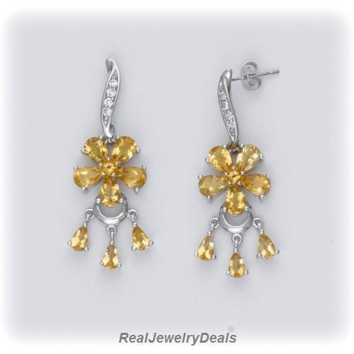 Solid Sterling Silver Genuine Citrine Flower Earrings