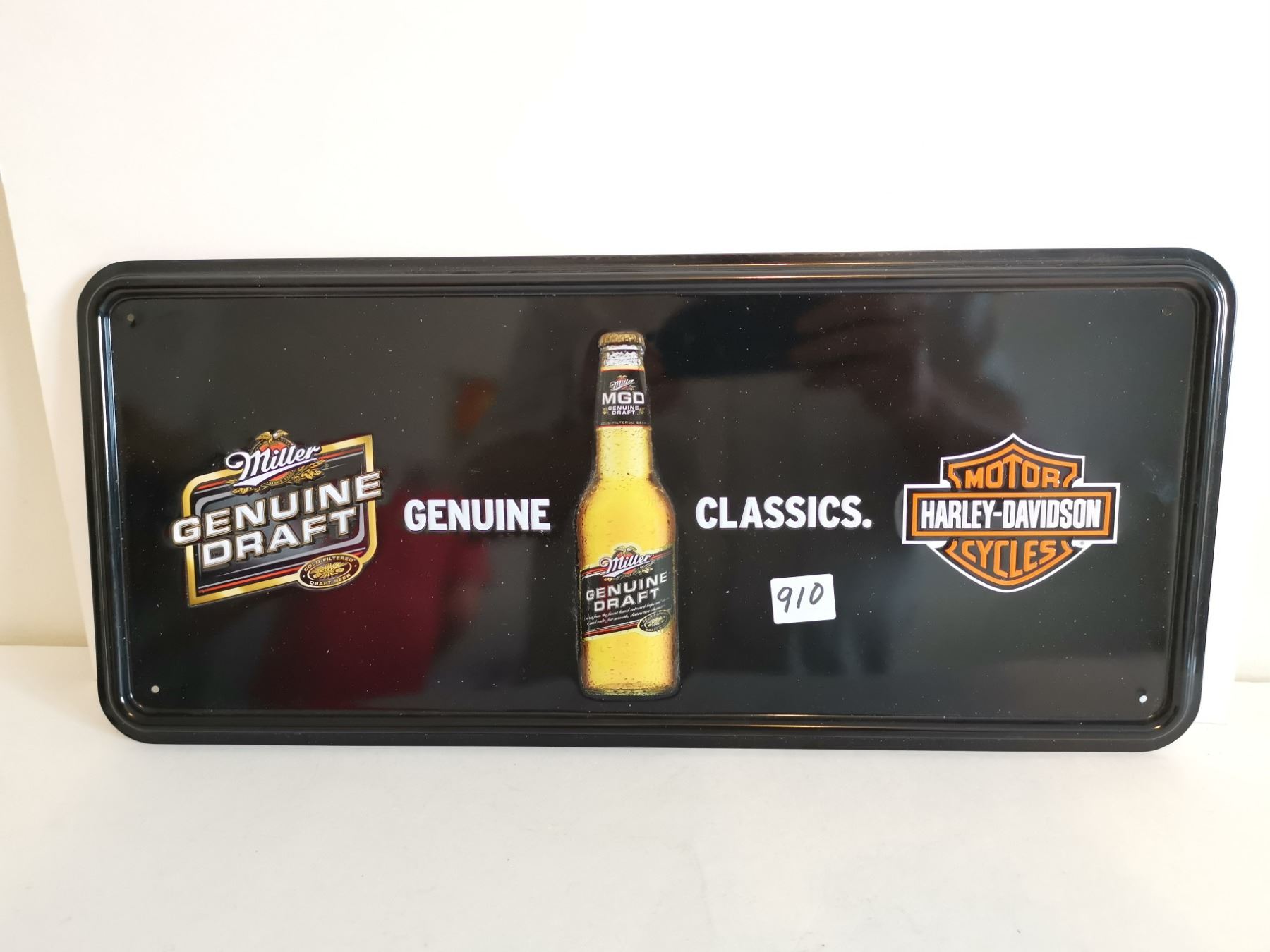 Genuine Draft and Harley-Davidson embossed sign 17.5x8"
