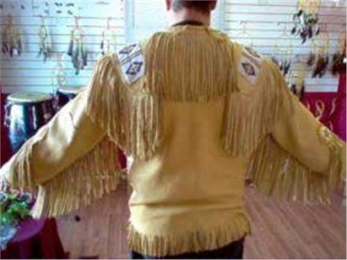 Genuine Elk Hide Beaded Leather Jacket This is a genuine Elk hide Leather jacket with handmade beadwork on shoulders and cuffs.One size fits all. The buttons on the jacket are genuine Elk horn. made by myself a Mohawk aboriginal. Will ship world wide. Brand new, custom made to your size. please allow 2 weeks for delivery