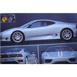 ART POSTER **|**|** 36X24 INCHES; UNFRAMED; This poster shows a silver Ferrari 360 Challenge Stradale from three different angles. Ferrari S.p.A. is a