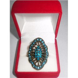 7CTW TEAL FLOWER BRASS ADJUSTABLE RING **|**|** 7CTW TEAL FLOWER BRASS ADJUSTABLE RING ; MSRP: $150