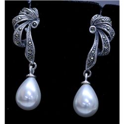 34.05 CTW PEARL ANTIQUE LOOKING JEWELRY .925 STERLING S **|**|** 34.05 CTW PEARL EARRINGS ANTIQUE LOOKING JEWELRY .925 STERLING SILVER ; MSRP: $200