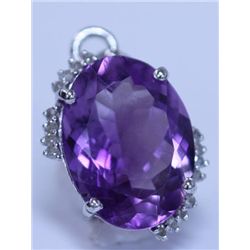 15.00 CTW AMETHYST AND DIAMOND PENDANT .925 STERLING SI **|**|** 15.00 CTW AMETHYST AND DIAMOND PENDANT .925 STERLING SILVER; CENTERSTONE 6.00 CTW; DI