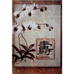 FLORAL REFLECTION **|**|** 13X19IN; UNFRAMED; This poster shows red and white flowers with green stems stretching over to a box containing Asian chara