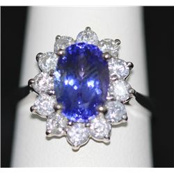 14K GOLD OVAL TANZANITE AND DIAMOND RING **|**|** 14K GOLD OVAL TANZANITE AND DIAMOND RING; MAINSTONE 3.05 CTW; DIAMOND 1.12 CTW; GOLD 14K WHITE 4 GRA