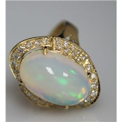 14K GOLD OVAL OPAL AND DIAMOND RING **|**|** 14K GOLD OVAL OPAL AND DIAMOND RING; MAINSTONE 11.9 CTW; DIAMOND 0.85 CTW; GOLD 14K YELLOW 8.0 GRAMS ; MS