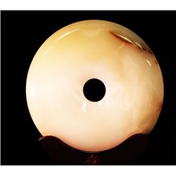 ROUND JADE STATUE WITH ANTIQUE WOOD BASE. **|**|** ROUND JADE; SIZED 9IN; THIS JADE COMES WITH A BEAUTIFUL WOOD BASE. ; MSRP: $15000