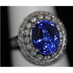 14K GOLD PEARCUT TAZANITE AND DIAMOND RING **|**|** 14K GOLD PEARCUT TAZANITE AND DIAMOND RING; MAINSTONE 4.19 CTW; DIAMOND 1.85 CTW; GOLD 14K WHITE 7