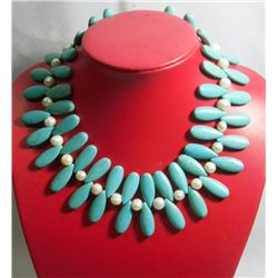 555.00CTW PHILIPPINE FRESHWATER PEARL AND BLUE TURQUOIS **|**|** 555.00CTW PHILIPPINE FRESHWATER PEARL AND BLUE TURQUOISE NECKLACE 18INCH ; MSRP: $0