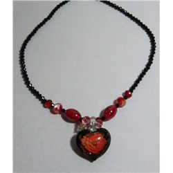 137CTW SUNNY ORANGE HEART MORANO PENDANT BEADED NECKLAC