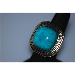 FASHION JEWELRY BRASS RING; SYNTHETIC LIGHT BLUE STONE