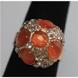 FASHION JEWELRY BRASS RING; SYNTHETIC RED STONE