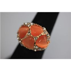 FASHION JEWELRY BRASS RING; SYNTHETIC RED STONE