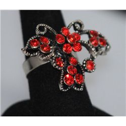 FASHION JEWELRY RED CZ BUTTERFLY SHAPED BRASS RING **|**|** FASHION JEWELRY RED CZ BUTTERFLY SHAPED BRASS RING ADJUSTABLE RING SIZE ; MSRP: $0