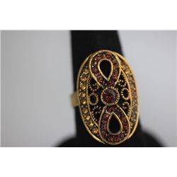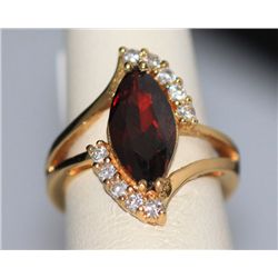 RED CZ AND CZ 14K GOLD PLATED RING **|**|** RED CZ AND CZ 14K GOLD PLATED RING ; METAL BRASS; BRAZILIAN JEWELRY; 14K GOLD PLATED ; MSRP: $0