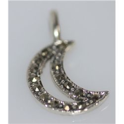 OPEN CRESCENT MOON MARCASITE PENDANT .925 STERLING SILV