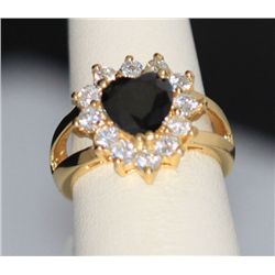 BLACK HEART SHAPED CZ 14K GOLD PLATED RING255639356 - BLACK HEART SHAPED CZ 14K GOLD PLATED RING