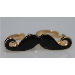 NOVELTY BLACK MUSTACHE SHAPED DUAL FINGER BRASS RING **|**|** NOVELTY BLACK MUSTACHE SHAPED DUAL FINGER BRASS RING ADJUSTABLE RING SIZE ; MSRP: $0