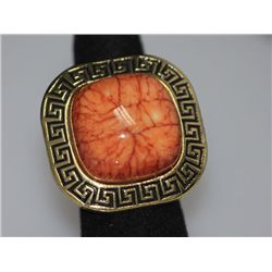 FASHION JEWELRY BRASS RING; SYNTHETIC LIGHT ORANGE STON **|**|** FASHION JEWELRY BRASS RING; SQUARE SHAPED; SYNTHETIC LIGHT ORANGE STONE ; MSRP: $0