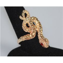 FASHION JEWELRY BLOOD RED AND LIGHT GREEN CZ SNAKE BRAS **|**|** FASHION JEWELRY LIGHT GREEN AND BLOOD RED CZ SNAKE BRASS RING ADJUSTABLE RING SIZE ;