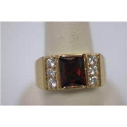 14K GOLD PLATED CZ AND RED CZ RING **|**|** 14K GOLD PLATED MENS CZ AND RED CZ RING; METAL BRASS; BRAZILIAN JEWELRY; 14K GOLD PLATED ; MSRP: $0