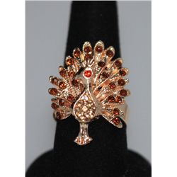 FASHION JEWELRY MULTI-COLORED CZ PEACOCK SHAPED BRASS R **|**|** FASHION JEWELRY BROWN, LIGHT BROWN, AND RED CZ PEACOCK SHAPED BRASS RING ADJUSTABLE R