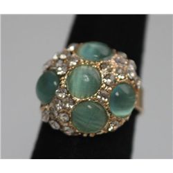 FASHION JEWELRY BRASS RING; SYNTHETIC GREEN STONE