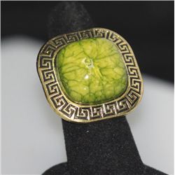FASHION JEWELRY BRASS RING; SYNTHETIC GREEN STONE **|**|** FASHION JEWELRY BRASS RING; SQUARE SHAPED; SYNTHETIC GREEN STONE ; MSRP: $0