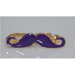 NOVELTY PURPLE MUSTACHE SHAPED DUAL FINGER BRASS RING211639631 - NOVELTY PURPLE MUSTACHE SHAPED DUAL FINGER BRASS RING