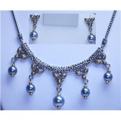 WHITE BRASS ANTIQUE STYLE SYNTETIC BLUE PEARL NECKLACE **|**|** WHITE BRASS ANTIQUE STYLE SYNTETIC BLUE PEARL NECKLACE AND EARRING SET ; MSRP: $900