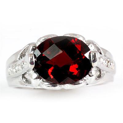 Gemstone: Blood Red; Total CTW: 4.7 ctw ; Metal Purity: 10KT ; Total Weight(g): 5.25 ; Ring Size: 7; Diamond Count1:6 RoundCut ; Diamond CTW1: 0.1 ; Clarity: SI1-SI2 ; Color:G-H ; Gem Count1: 1 Oval Checkered Cut ; Gem Carat Weight: 4.6; Main Stone Color: Red ; Clarity Rating: AAA ; MSRP: $1550
