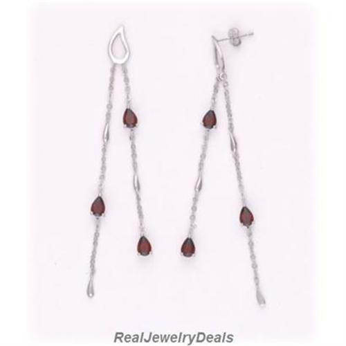 Solid Sterling Silver Genuine Garnet DANGLING EARRINGS