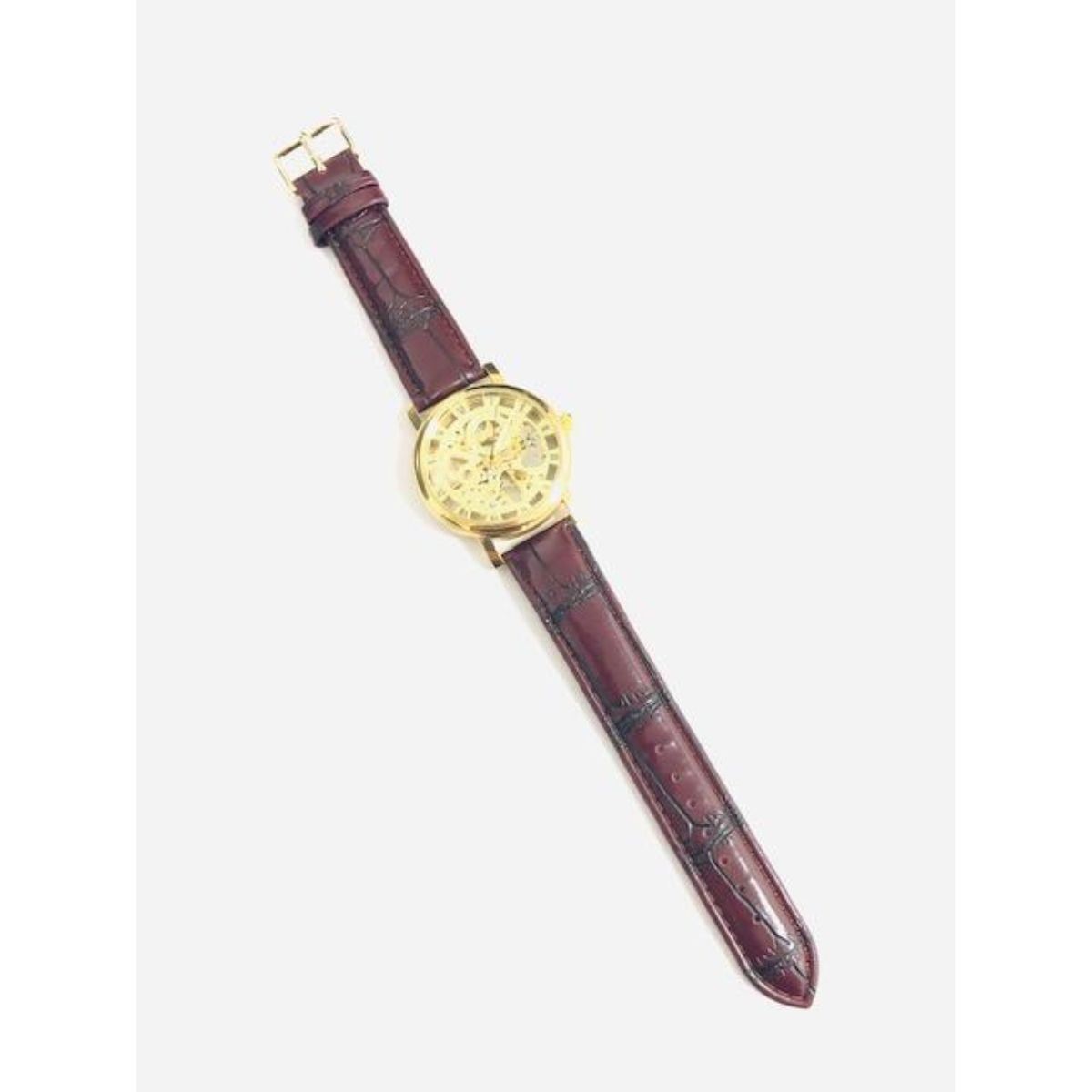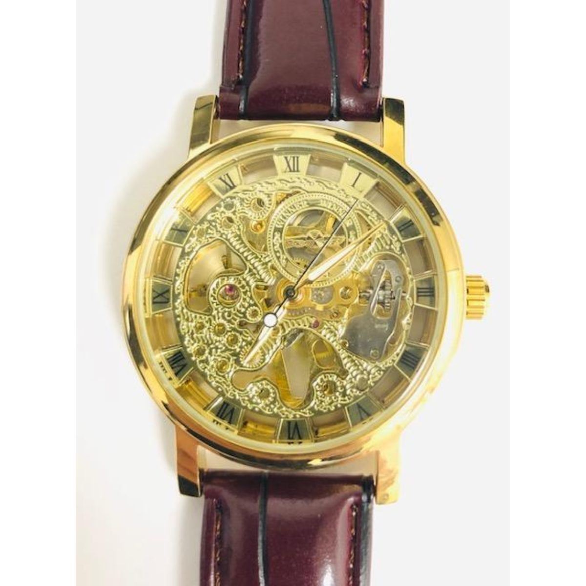 Genuine Leather Banded Skeleton Dial Automatic Watch. View Photos For Further Details.