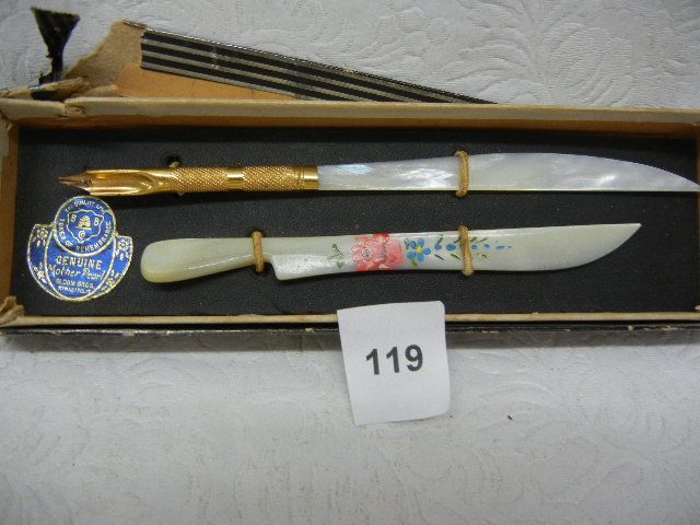Genuine Mother of Pearl Dip Pen and Hand Painted Letter Opener, by Bloom Bros. Co.