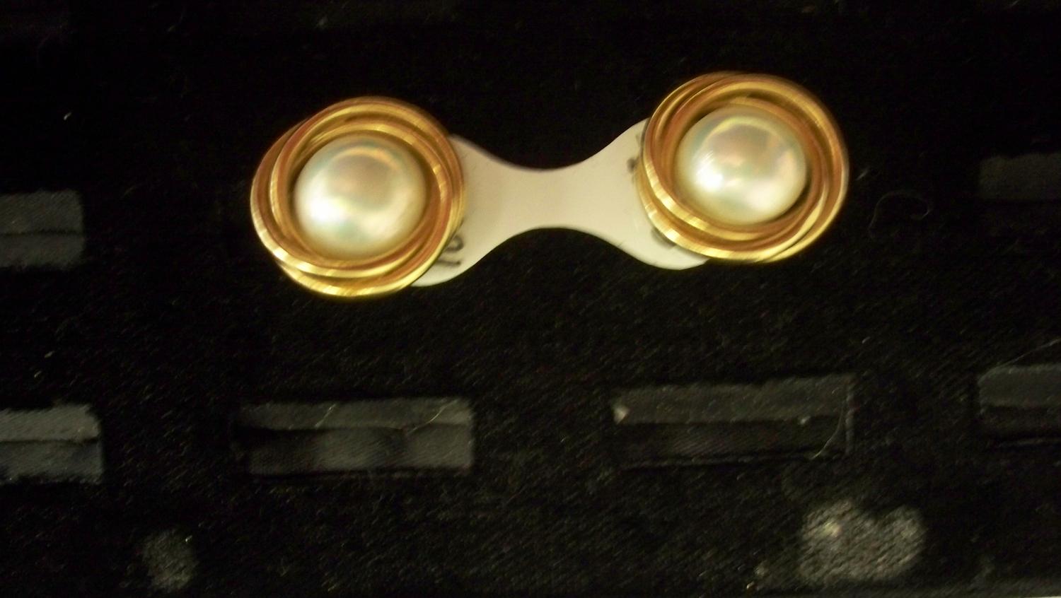 Genuine pearls in heavy gold earrings