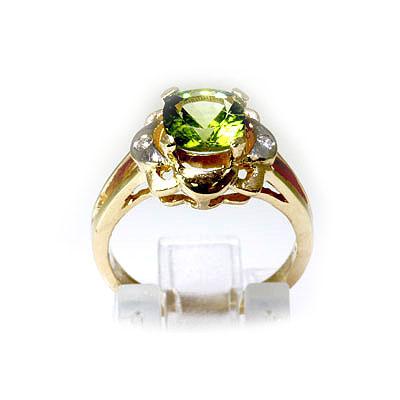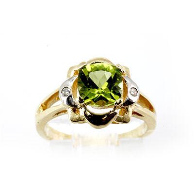 Gemstone: Peridot; Total CTW: 1.54 ctw ; Metal Purity: 14KT ; Total Weight(g): 4.03 ; Ring Size: 5.25; Diamond Count1:2 RoundCut ; Diamond CTW1: 0.02 ; Clarity: SI1-SI2 ; Color:G-H ; Gem Count1: 1 RoundCut ; Gem Carat Weight: 1.52; Main Stone Color: Green ; Clarity Rating: AAA ; MSRP: $1335