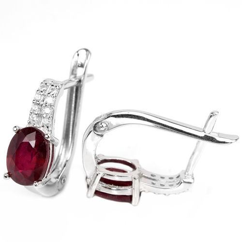 GENUINE 8X6 MM. BLOOD RED RUBY CZ 925 SILVER EARRING 14K WHITE GOLD COATING; STONE SHAPE-OVAL;STONE DIMENSION-8 X 6 MM.;ITEM WEIGHT-3.6 GRAM;COLOR-BLOOD RED;LUSTER-ALLURING;TREATMENT-HEATED;ORIGIN OF STONE-AFRICA;HARDNESS-7;FACE OF EARRING 14 X 6 MM. ;WHITE CUBIC ZIRCONIA 1.2 MM.