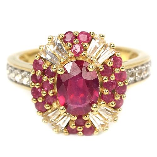 GENUINE AAA BLOOD RED RUBY TOPAZ & CZ 925 SILVER RING 14K YELLOW GOLD COATING; RING SIZE 7.00 ( can be resized))ITEM QUANTITY1;STONE SHAPEOVAL & ROUND;STONE DIMENSION8 X 6 MM. , 2 MM. , 1.7 MM.;ITEM WEIGHT5 GRAM;COLORBLOOD RED & WHITE;CLARITYTRANSLUCENT & IF,VVS;LUSTERWINSOME;TREATMENTHEATED & NATURAL UNHEATED;ORIGIN OF STONEAFRICA;HARDNESS8 - 9;OTHERFACE OF RING 21 X 15 MM. ;WHITE CUBIC ZIRCONIA 3.5 X 2 X 1.5 MM.