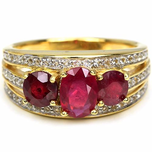 GENUINE BLOOD RED RUBY TOPAZ 925 SILVER RING 14K WHITE YELLOW GOLD COATING; RING SIZE -7.50 ;ITEM QUANTITY1STONE SHAPEOVAL ROUND FACET CUT;STONE DIMENSION7 X 5 5 MM.;ITEM WEIGHT2.14 CARAT;COLORBLOOD RED;CLARITYTRANSLUCENT;LUSTERGORGEOUS;TREATMENTHEATED;ORIGIN OF STONEAFRICA;HARDNESS9.0OTHERFACE OF RING 21 X 9 MM. ;WHITE TOPAZ 1 MM. ;TOTAL 4.66 G.