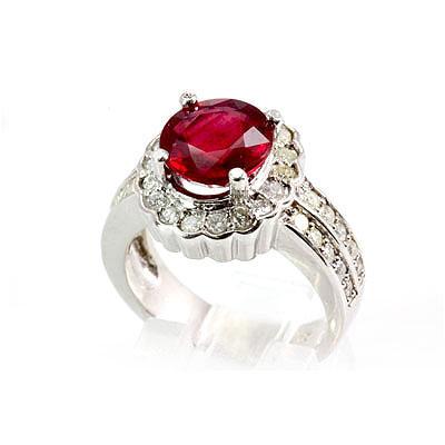 Gemstone: Ruby; Total CTW: 4.45 ctw ; Metal Purity: 14KT ; Total Weight(g): 7.9 ; Ring Size: 6.25; Diamond Count1:38 RoundCut ; Diamond CTW1: 0.85 ; Clarity: SI1-SI2 ; Color:G-H ; Gem Count1: 1 RoundCut ; Gem Carat Weight: 3.6; Main Stone Color: Blood-Red ; Clarity Rating: AAA ; MSRP: $3711